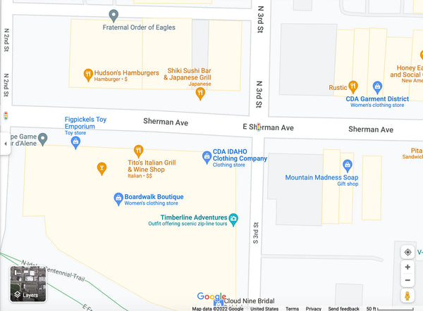 We'd love to see you! Come to downtown Coeur d'Alene Idaho on the corner of Sherman Ave and 3rd Street in the Plaza Shops. We are right on the corner!